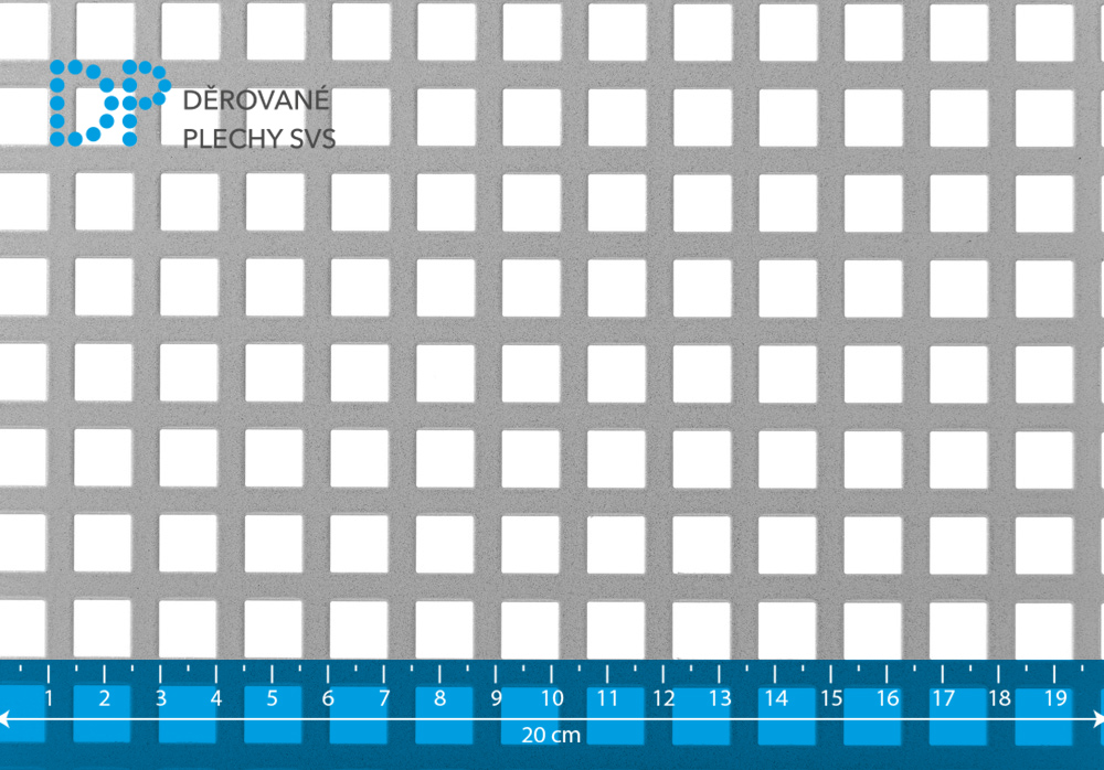 Děrovaný plech ocelový, čtvercové řadové děrování Qg 10-15 mm. Rozměr 1000x2000 mm. Tloušťka plechu 3 mm. Vyrobeno dle DIN 24 041. Jakost DC01/DD11. Hmotnost 26,69 kg. Volná plocha 44,44 %. Po dlouhé straně je neděrovaný okraj cca 1 cm. Po krátké straně může být plech střižen přes otvory.