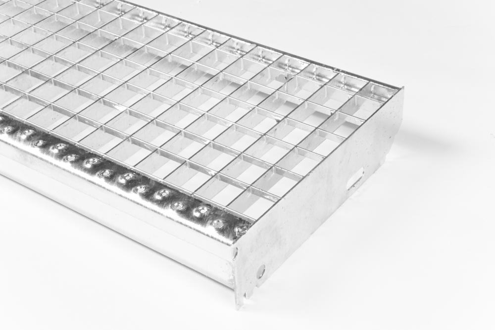 Pozinkované schodišťové stupně 1400x305 mm s okem 30x30 mm. Minimální garantovaná nosnost 408 kg. Hmotnost 9.8 kg. Třída protiskluzu R11. Vyrobeno dle DIN 24531-1. Stupně splňují normu pro úniková schodiště.