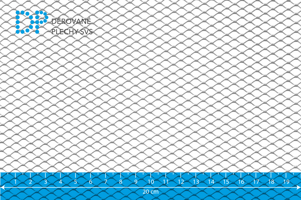 Tahokov hliníkový s okem 10x6 mm, můstek 1 mm. Jakost hliníku Al 99,5% - čistý hliník. Rozměr 1000x2000 mm (šířka 1000 mm, výška 2000 mm - délka oka (větší rozměr) je rovnoběžná se šířkou 1000 mm). Síla plechu 1 mm. Korigovaná výška 2.1 mm (tloušťka tahokovu z profilu). Vyrobeno dle DIN 791.